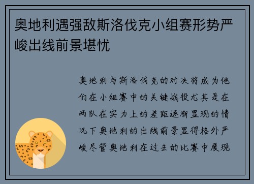奥地利与斯洛伐克的对决将成为他们在小组赛...