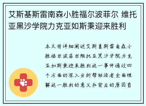 本文将详细阐述“艾斯基斯雷南森小胜福尔波...