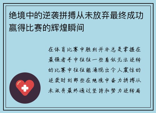 在体育比赛中,胜利并非总是掌握在最强者手...