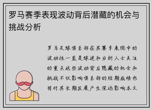 罗马足球俱乐部在其赛季表现中的波动性一直...
