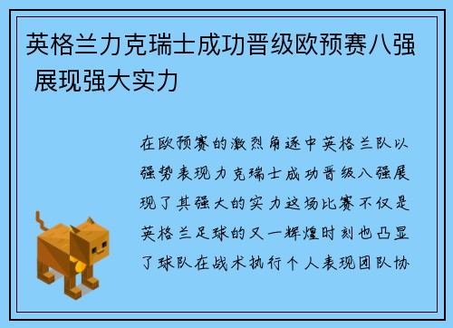 在欧预赛的激烈角逐中,英格兰队以强势表现...