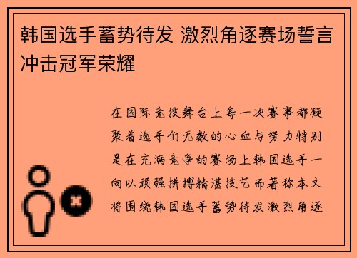 在国际竞技舞台上,每一次赛事都凝聚着选手...